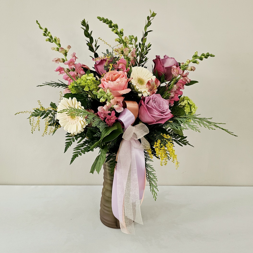 *Flowers and vase to be a seasonal assortment, specific varieties and colors may vary.
