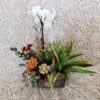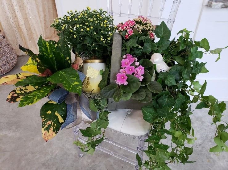 Mixed green and flowering plants artfully arranged in a decorative basket or container. Keepsake accents such as candles, ceramics, and giftware items available as additions.