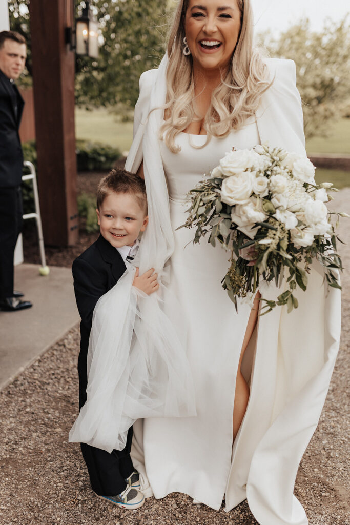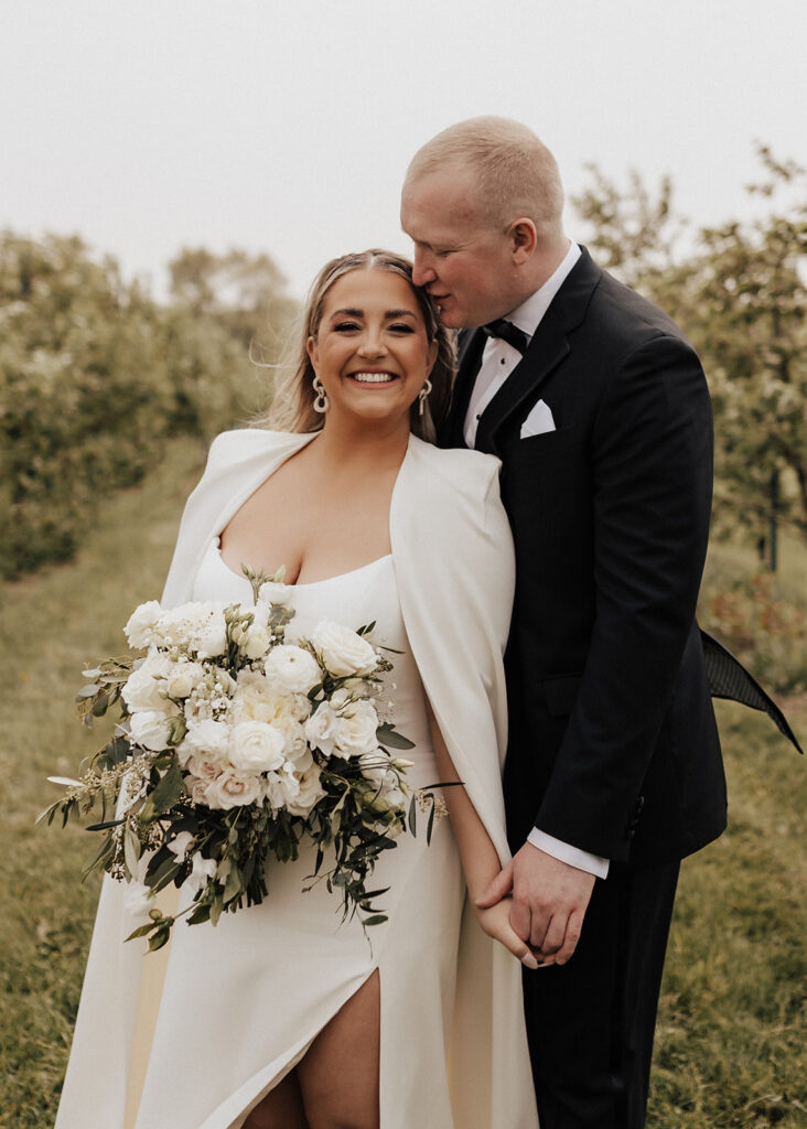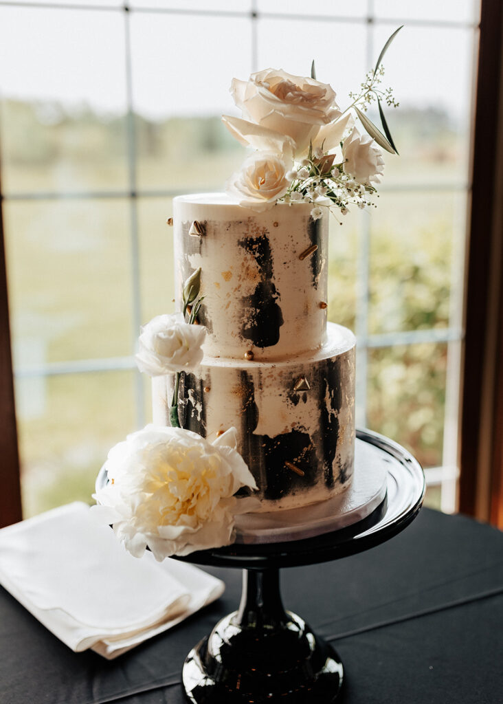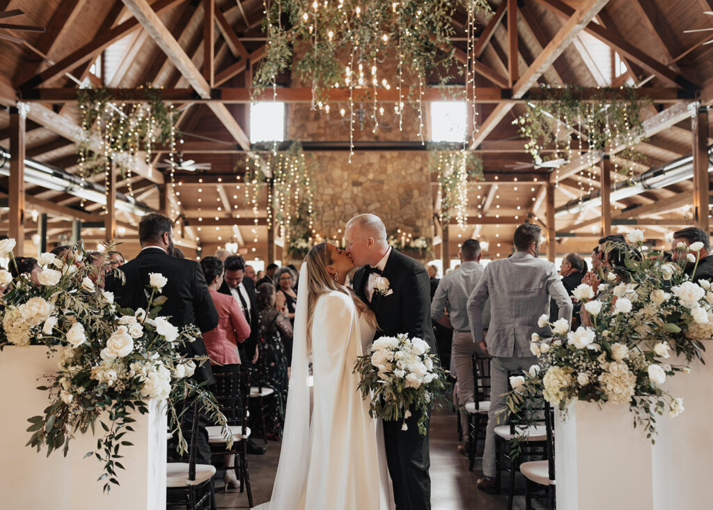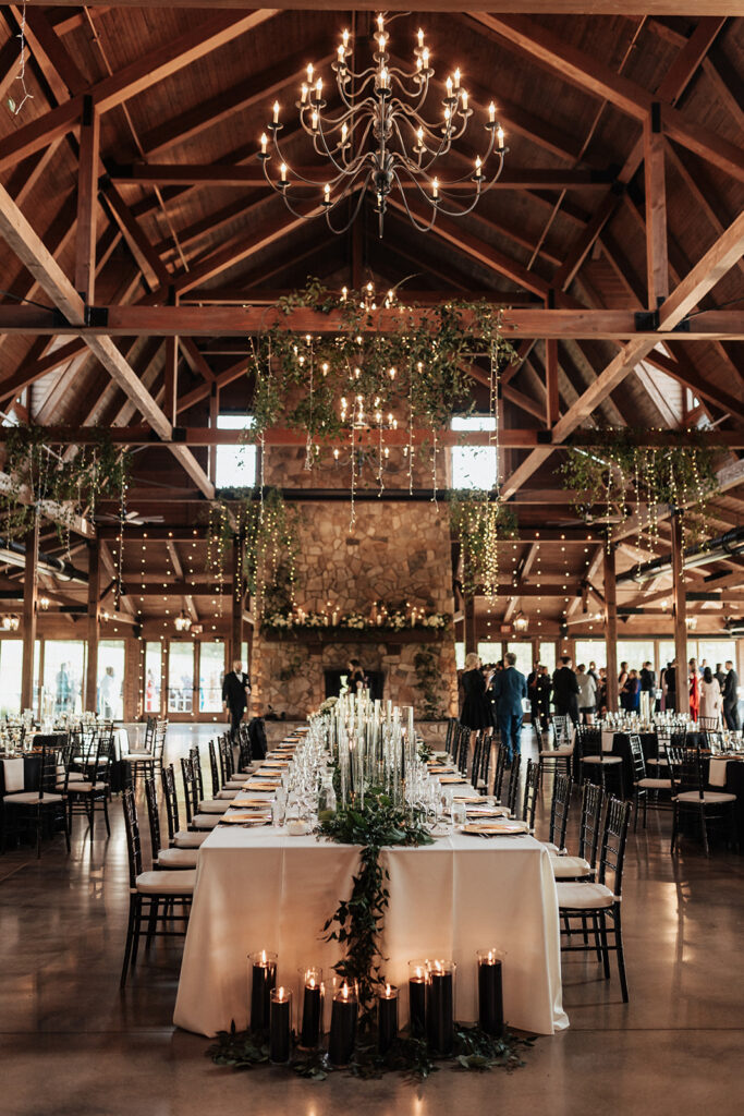 An elegant, modern take on rustic design, this wedding paired soft white florals and natural greenery with dark accents and candlelight for added depth. The look moved effortlessly from open-air moments to a warm, refined reception, creating a setting that felt timeless and inviting.