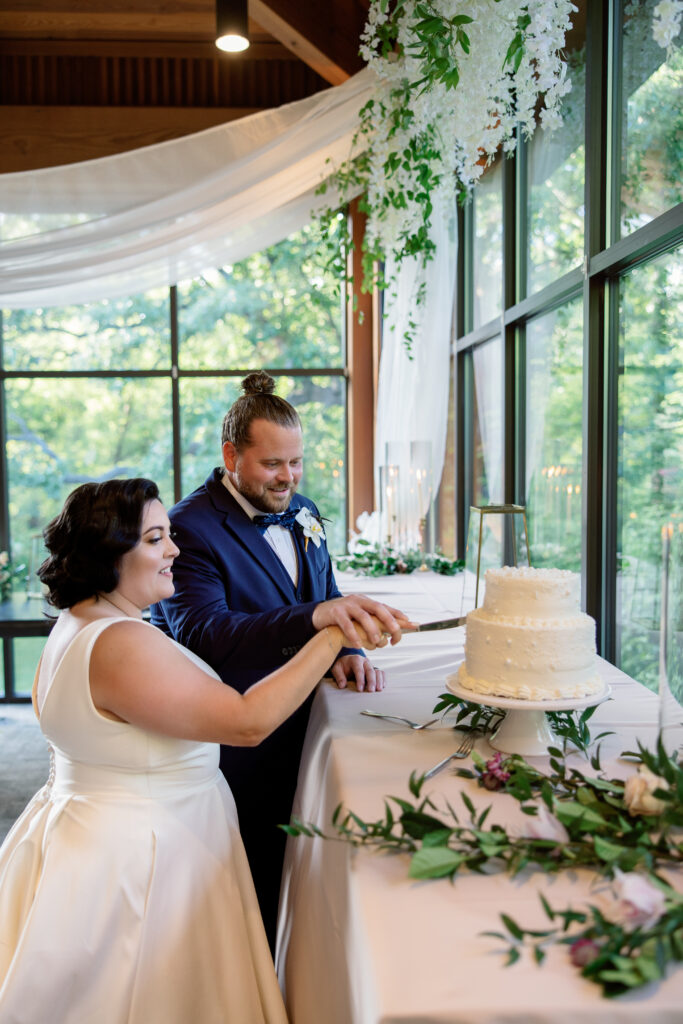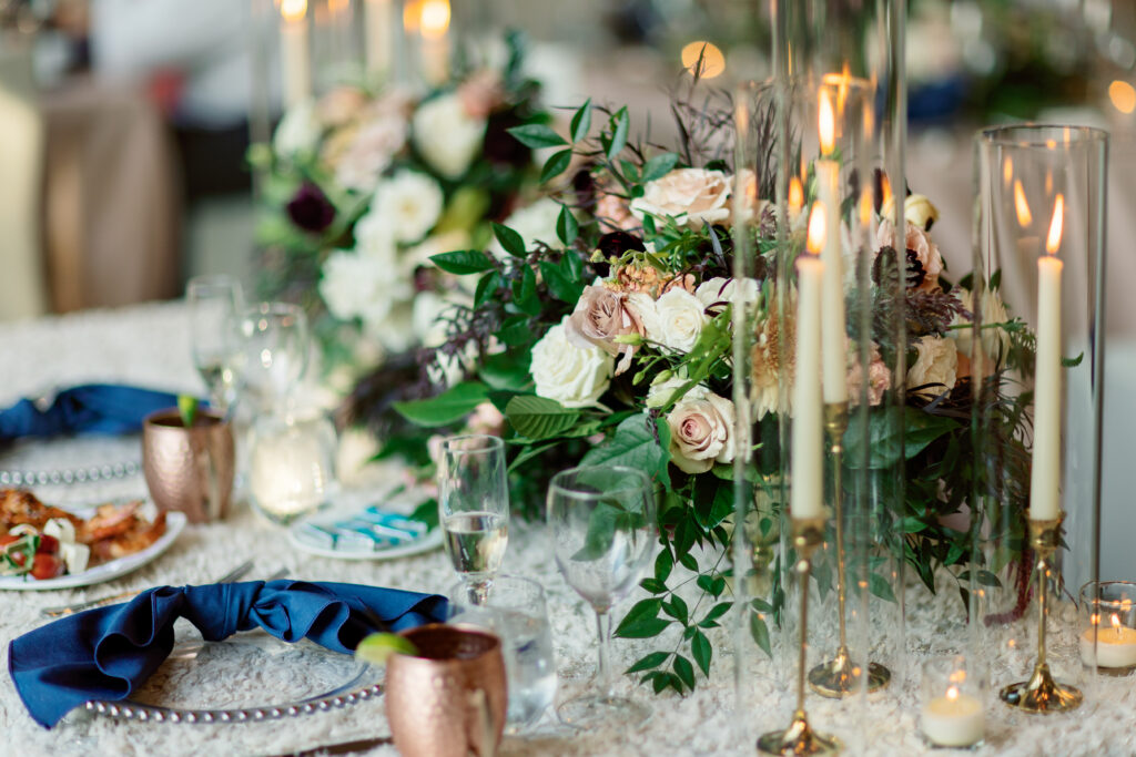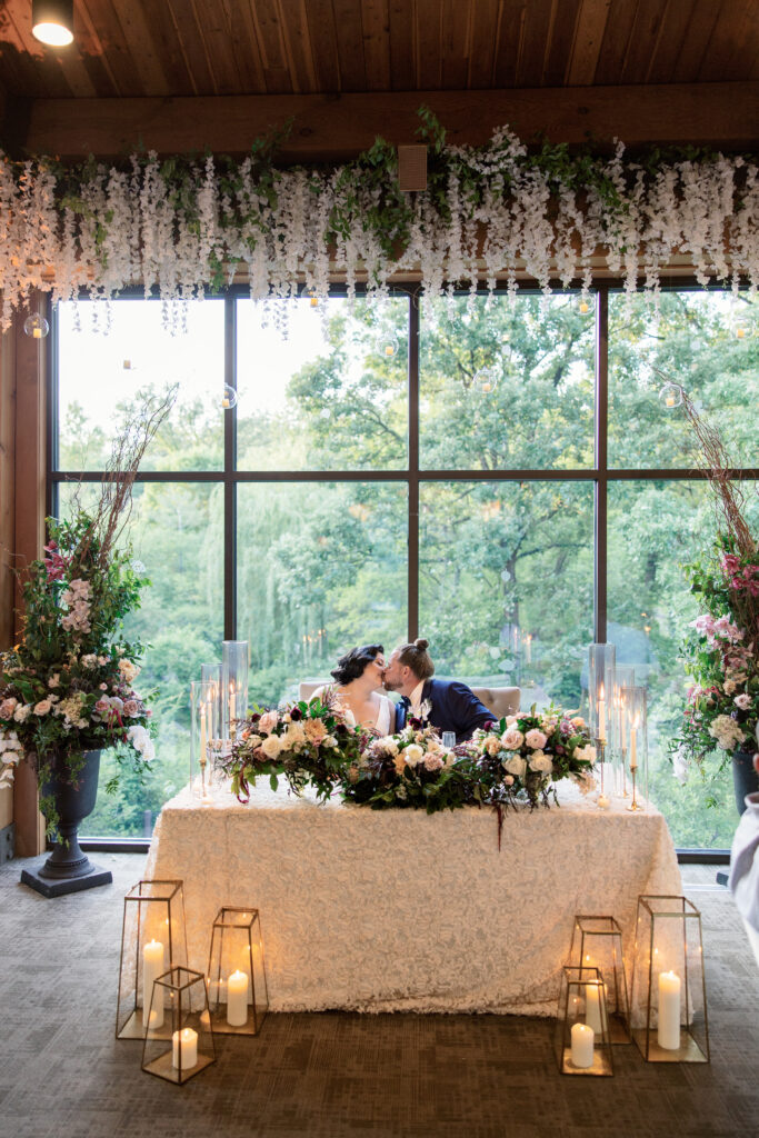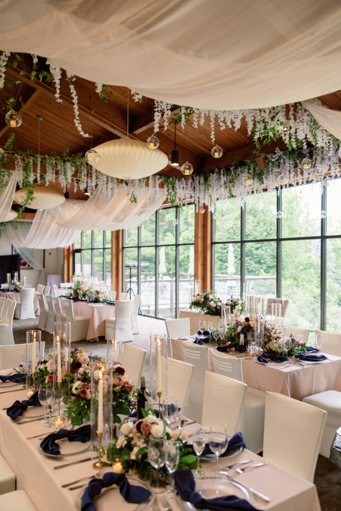 A garden-inspired wedding set against the lush backdrop of a Japanese garden, this celebration paired cascading white wisteria and soft romantic florals with navy accents and candlelight for a look that felt both refined and naturally enchanting.